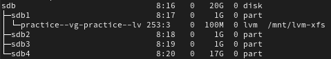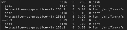 echo "/dev/practice-vg/practice-lv /mnt/vm-xfs xfs defaults 0 0" >> /etc/fstab