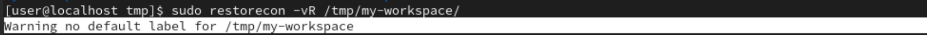 restorecon -vR 명령으로 시스템에서 기본으로 정의 된 context로 되돌리기가 가능하다. 하지만 /tmp디렉토리 내에는 default로 설정되어 있는 값이 없어 Warning 메세지가 뜨게 된다.