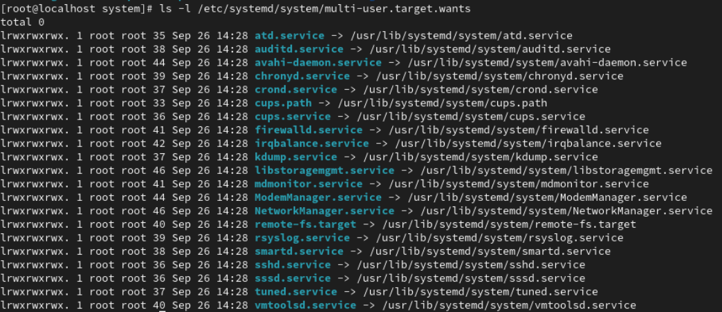 시스템 관리자가 수동으로 생성 및 관리하는 유닛들이 저장되는 공간. 부팅시 해당 디렉토리를 참고하여 서비스를 실행한다. 위 사진은 multi-user.target 이름으로 된 디렉토리 정보다./run/systemd/system/usr/lib/systemd/systemsystemctl은 systemd 유닛을 관리하는 명령어다. 기존 init에선 service라는 명령을 썼다.