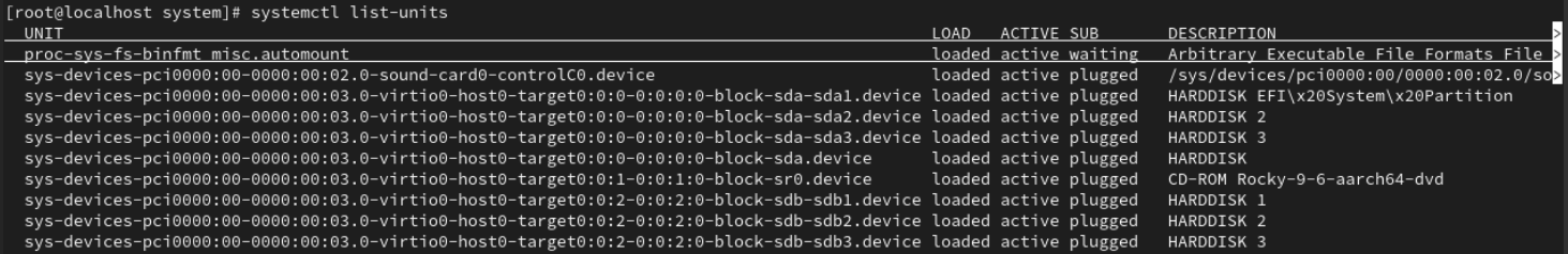 예시로 list-units라는 subcommand를 실행했다. 해당 보조 명령은 시스템에 존재하는 유닛 중 실행 상태인 유닛을 확인할 수 있다. 여기서 -a옵션을 주면 비활성화 상태인 유닛의 정보도 확인 가능하다.