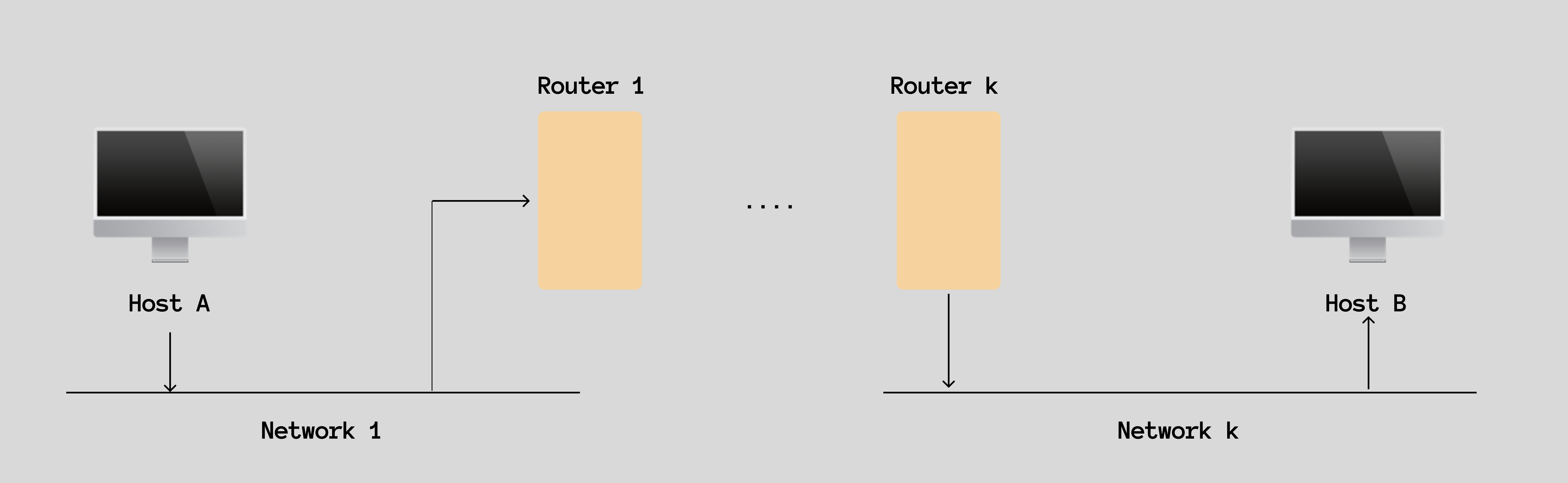 위 사진과 같이 Host A가 보낸 Packet은 Router를 통해 우리가 원하는 목적지까지 Packet을 전달할 수 있게 됩니다.