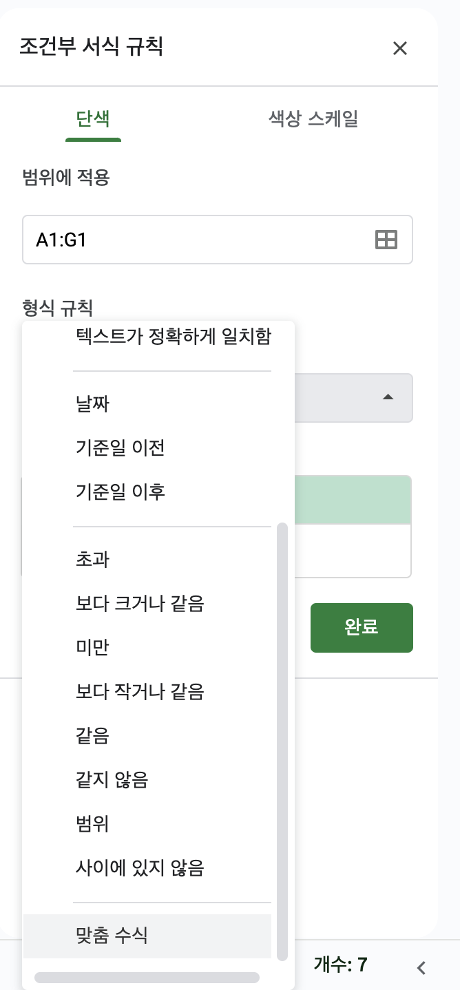 • 맞춤 서식을 통해 아래와 같이 텍스트 컬러, 볼드체 등 다양한 조건 설정 가능