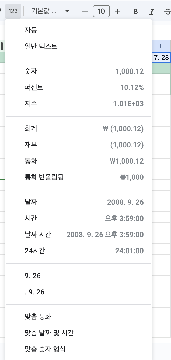 • 9.26 or 맞춤 날짜 및 시간으로 '월.일'만 보이도록 설정