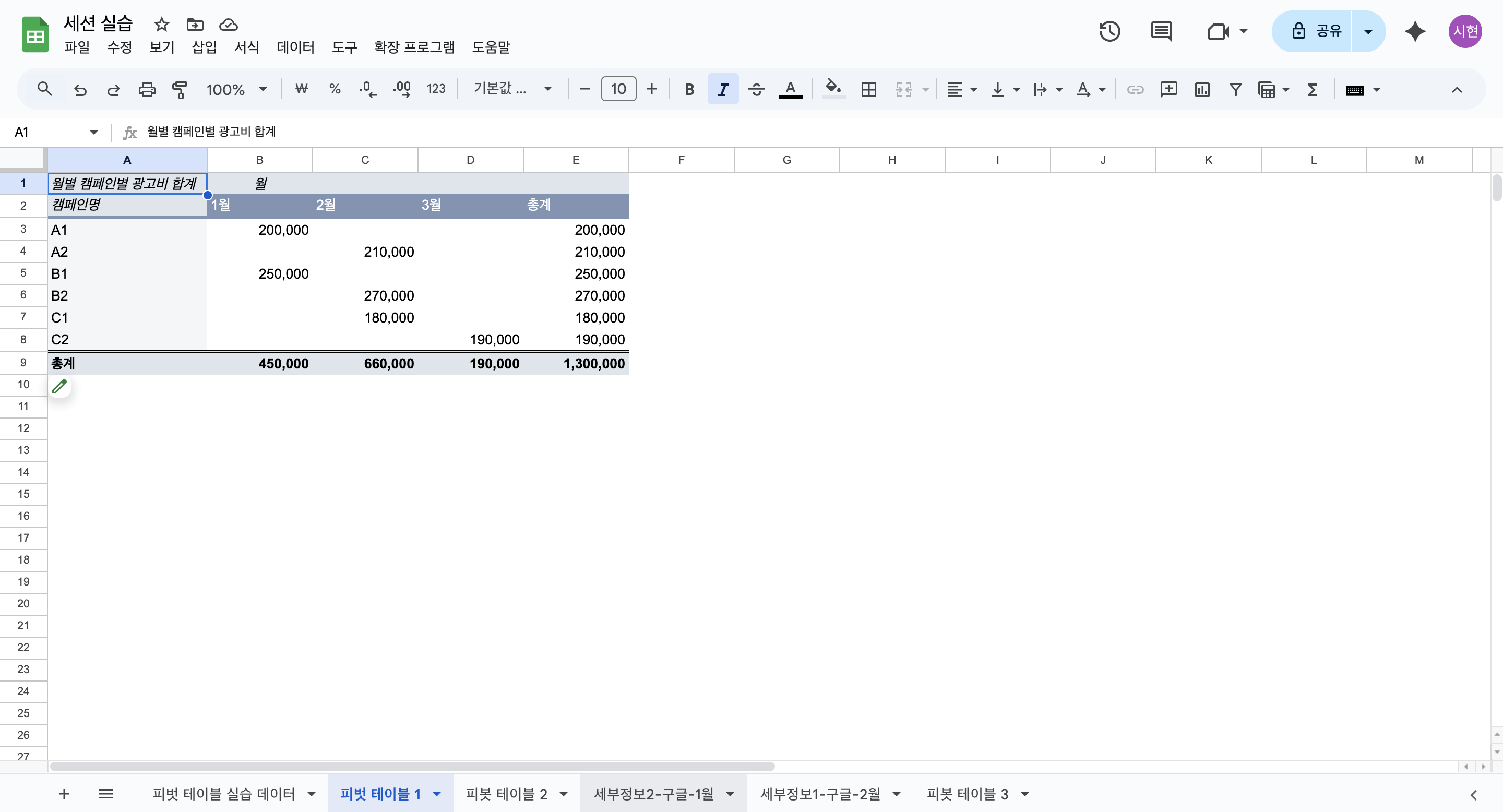 • 아래와 같이 그룹화 된 피벗 테이블 완성