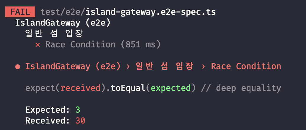 위 테스트는 최대 참여 인원이 3명인 섬에 30명의 클라이언트가 동시에 참여 요청을 보내는 상황을 가정합니다.