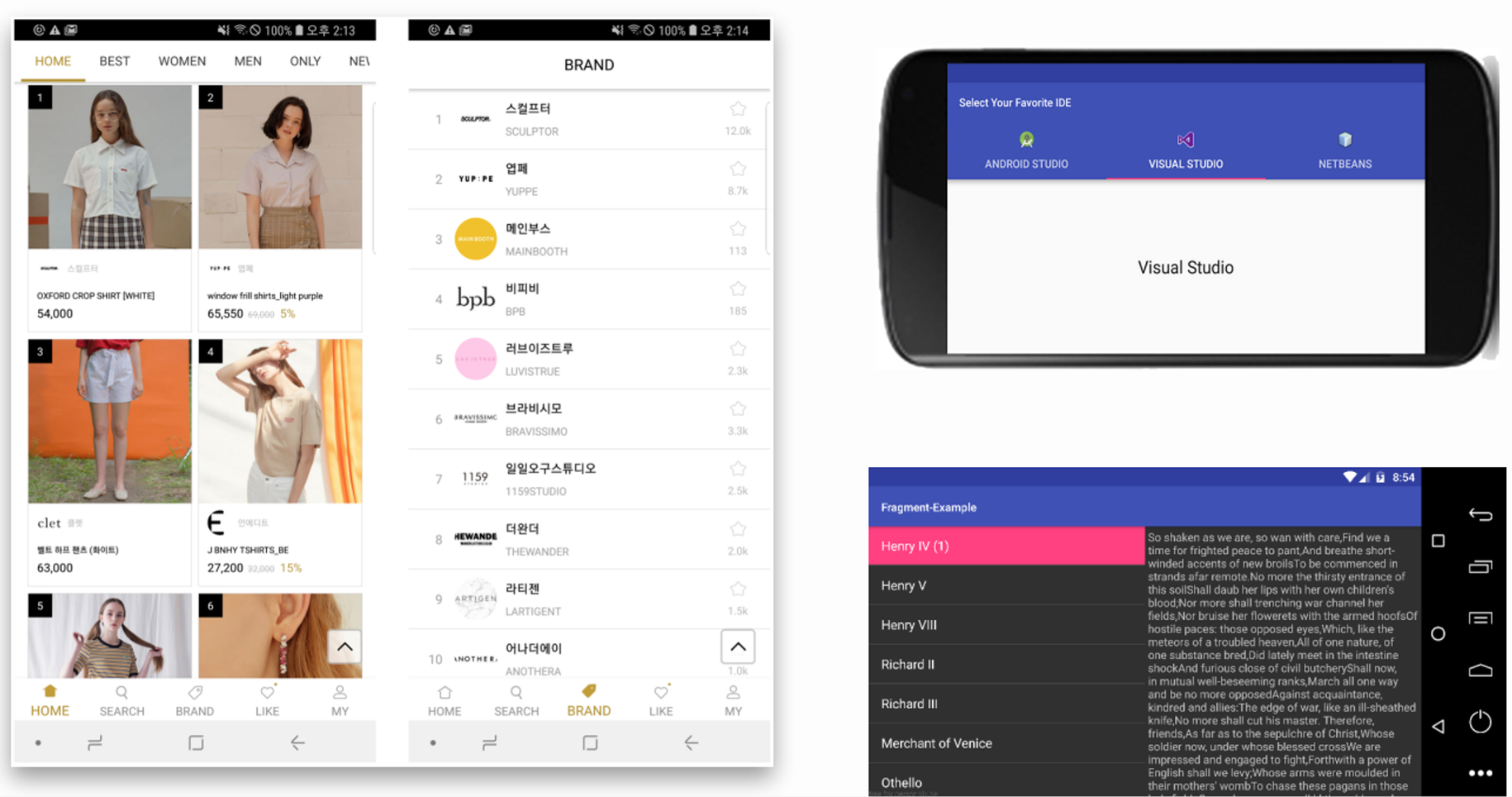 여러 activity를 만들지 않아도 여러 화면을 보여줄 수 있다.