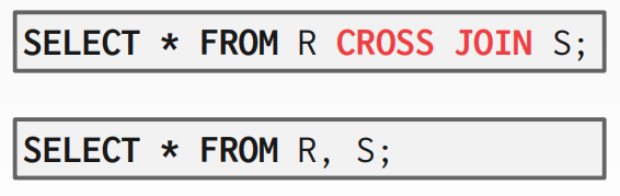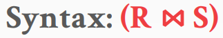 Join 연산은 두 개의 relation을 입력받아 튜플에 대해 가능한 모든 조합을 구한 후(product), key 값이 일치하는 튜플들을 필터링한 결과를 출력한다. SQL의 NATURAL JOIN 구문이 join 역할을 한다.