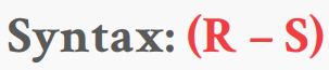 Difference 연산은 두 개의 relation을 입력받아 두 번째 relation에는 포함하되지 않지만 첫 번째 relation에 나타나는 모든 튜플을 포함하는 테이블을 출력한다. Intersection 역시 입력받는 두 개의 relation들은 정확히 같은 속성을 가지고 있어햐 한다. SQL의 EXCEPT 구문이 intersection 역할을 한다.