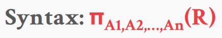 Projection 연산은 relation을 입력받고 지정된 속성만을 포함하는 튜플을 반환한다. 다시 말해서, 특정 칼럼만을 가져온 테이블을 만들 수 있으며 SQL의 SELECT 구문이 projection 역할을 한다. Relational algebra의 select 연산이 SELECT 구문과 같은 역할을 하는 것이 아님을 주의하자.