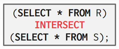 R 테이블과 S 테이블을 union한 테이블을 보면 a3 103 entity가 중복으로 나타나는 것을 확인할 수 있다. 여기서 SQL이 키 값의 중복을 허용하기 떄문에 set이 아닌 multiset임을 알 수 있다.