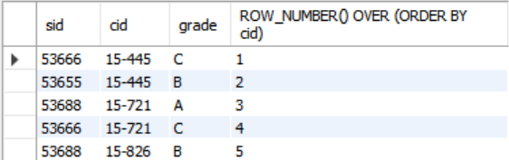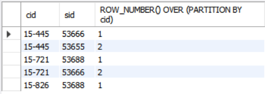 SELECT cid, sid, ROW_NUMBER() OVER (PARTITION BY cid)