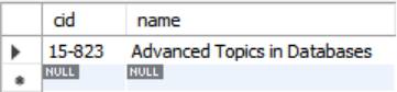 INSERT INTO course VALUES ('15-823', 'Advanced Topics in Databases');