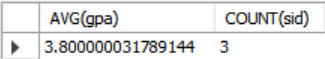 SELECT AVG(gpa), COUNT(sid)