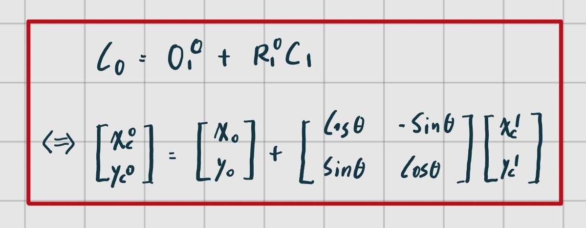 Translation과 Roation이 동시에 이루어진다면 좌표계 변환은 아래의 수식과 같다.