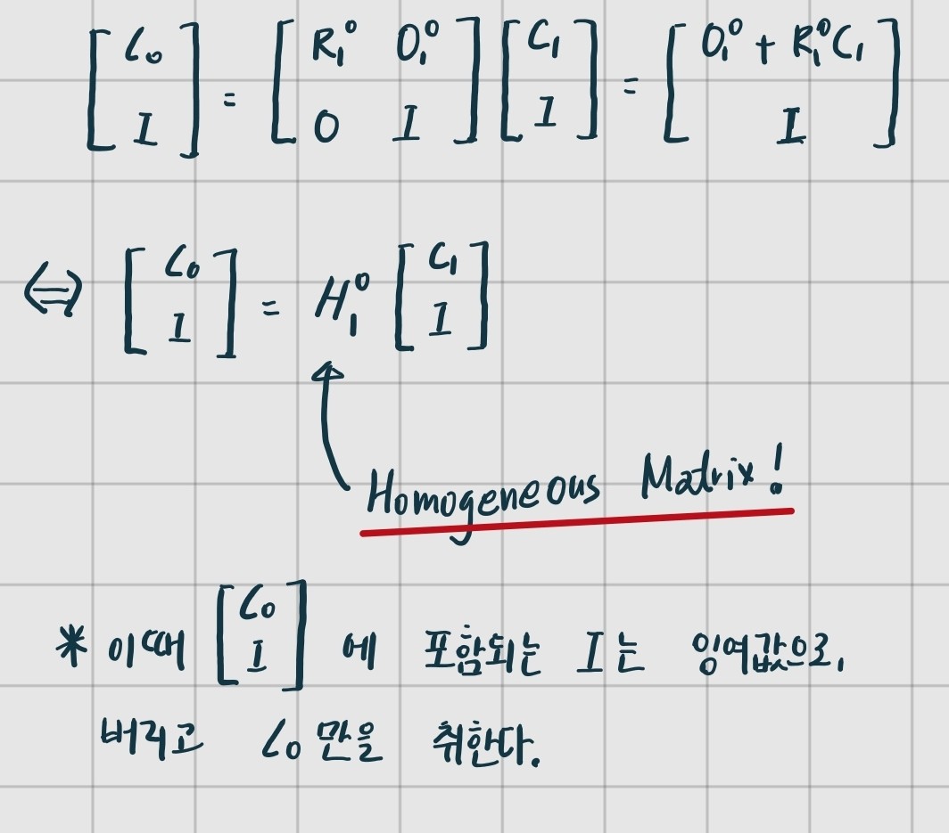 마지막으로, homogeneous matrix는 아래의 성질을 가진다.