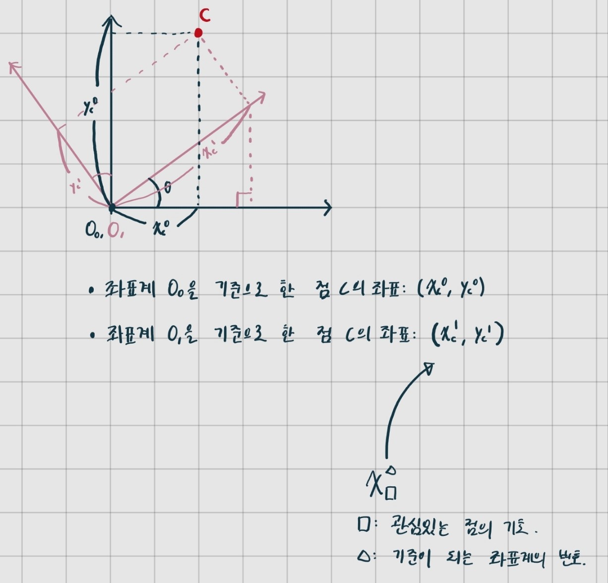 좌표계가 회전 이동한 상황이다.
