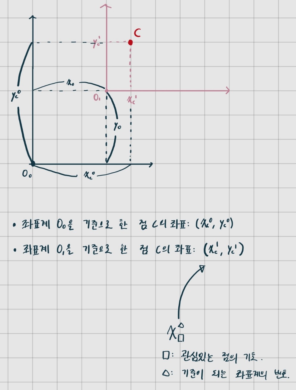 좌표계가 평행 이동한 상황이다.