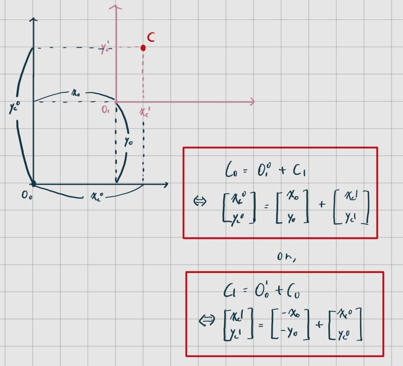 을 알고 을 모르는 상황에서, 어떻게해야 을 구할 수 있을까? 즉 좌표계 에서 점 의 좌표를 알고 좌표계 에서 점 의 좌표를 어떻게 구할 수 있을까? 방법은 간단하다.