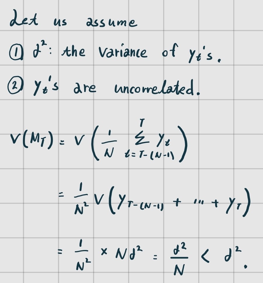 간단히 말하자면, 시점 를 기준으로 최근 개의 simple average를 구하는 것이다.