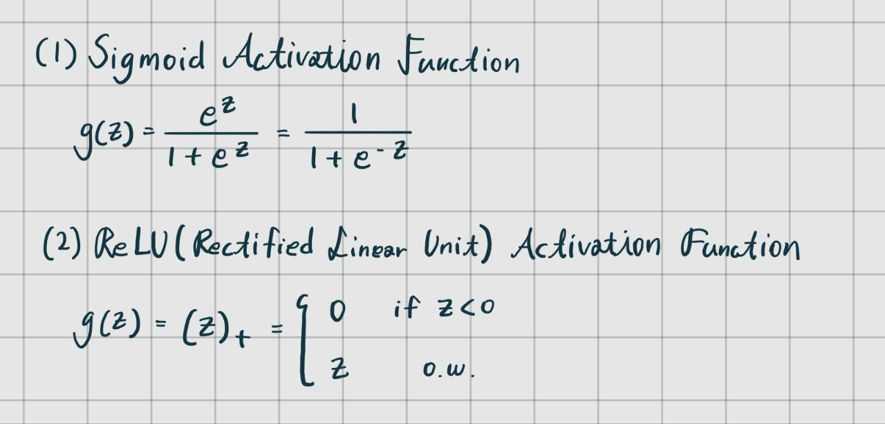 위의 함수식에서 g(z)는 Nonlinear Activation Function이라고 부르며, 어떤 함수를 사용할지 사용자가 정해야한다.