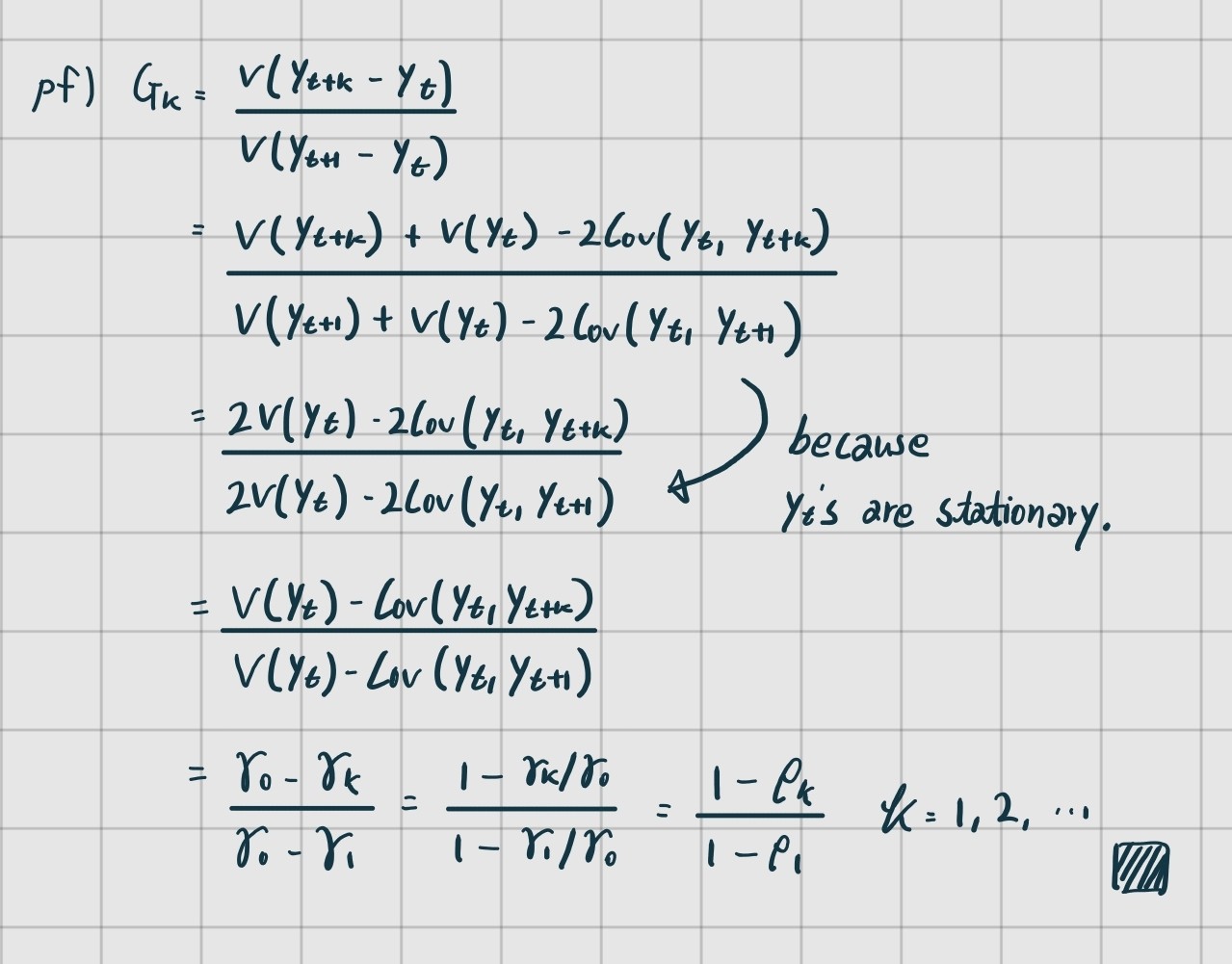 만약 time series가 stationary하다면, 는 아래와 같은 형태로 변형할 수 있다.
