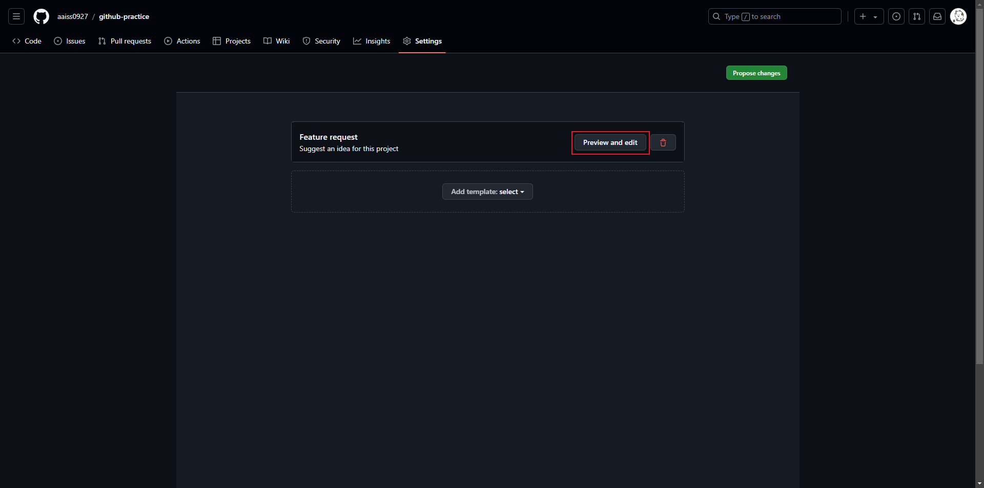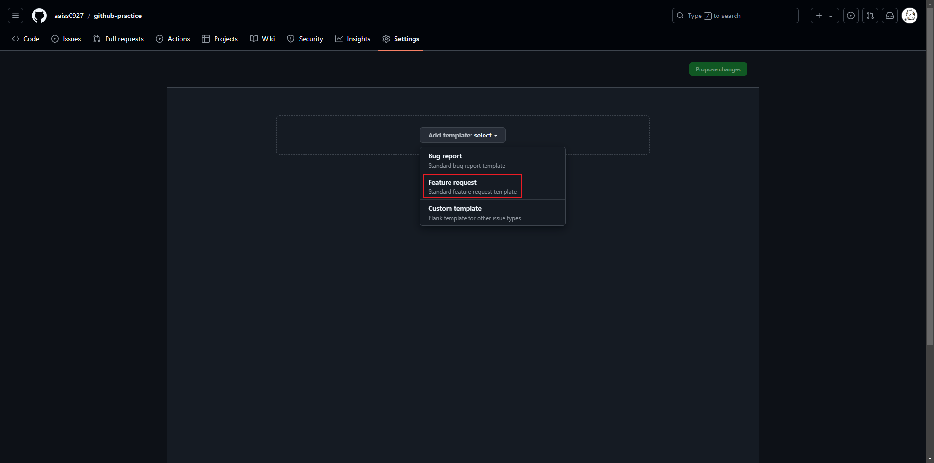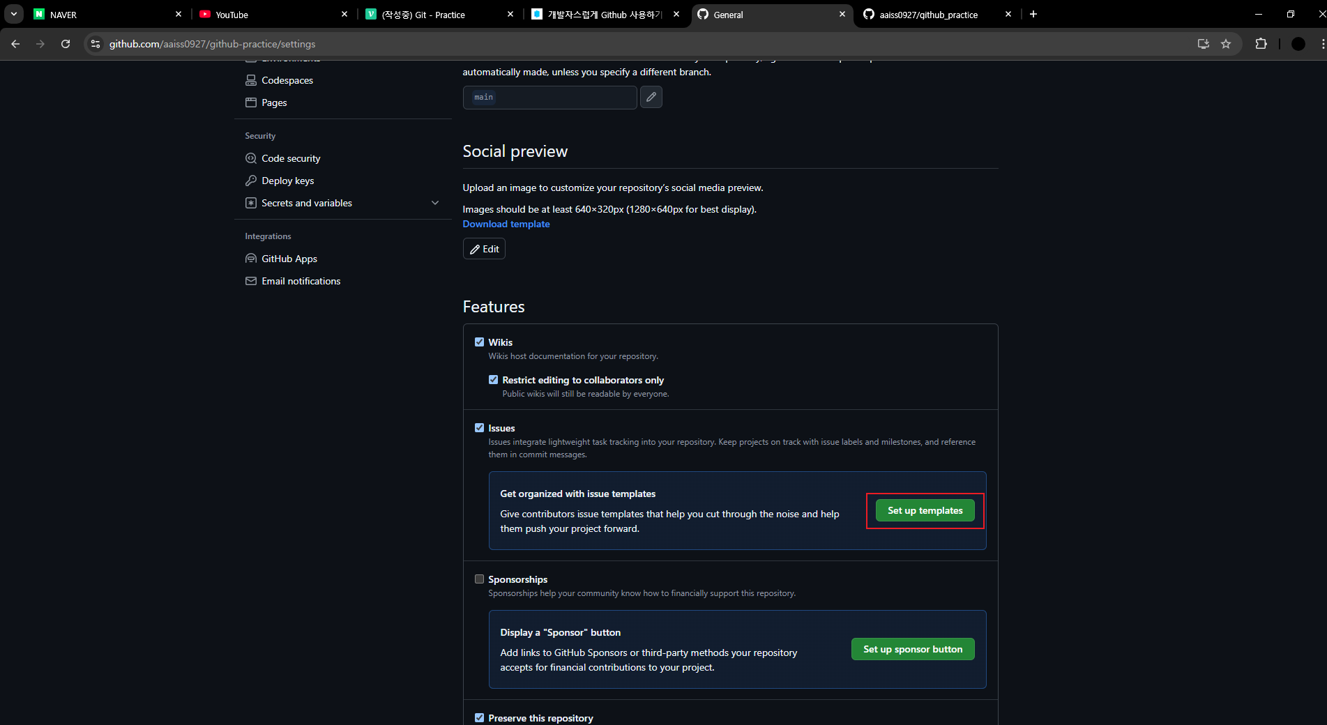스크롤 내린 후 Features - Issues의 "Set up templates" 클릭