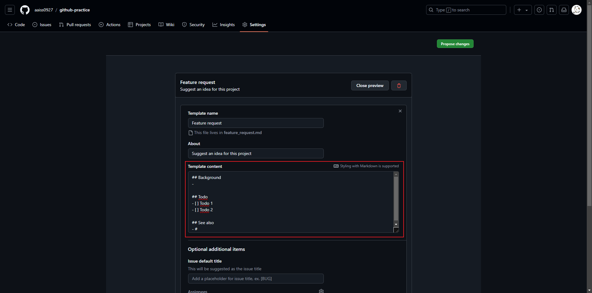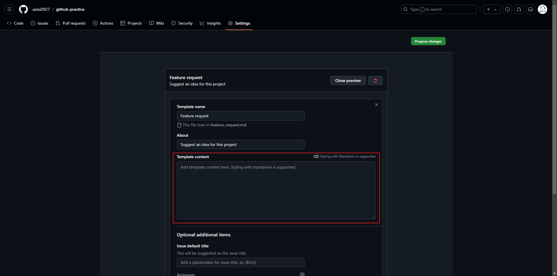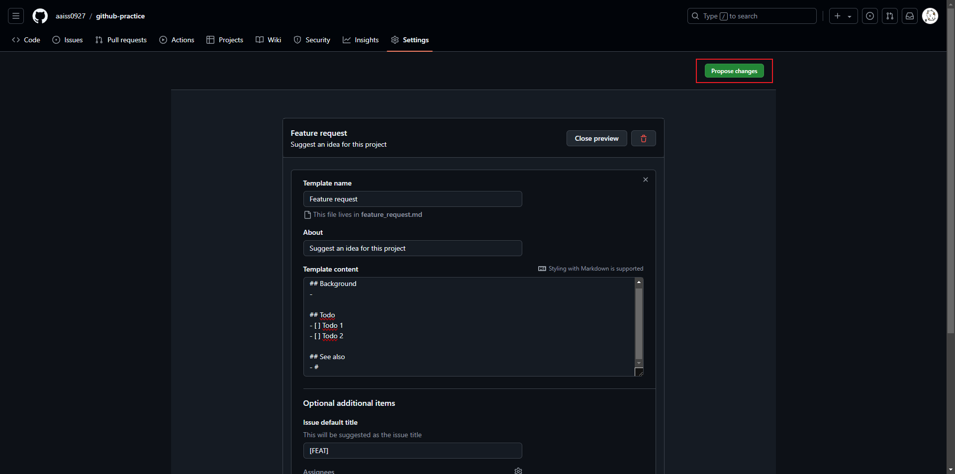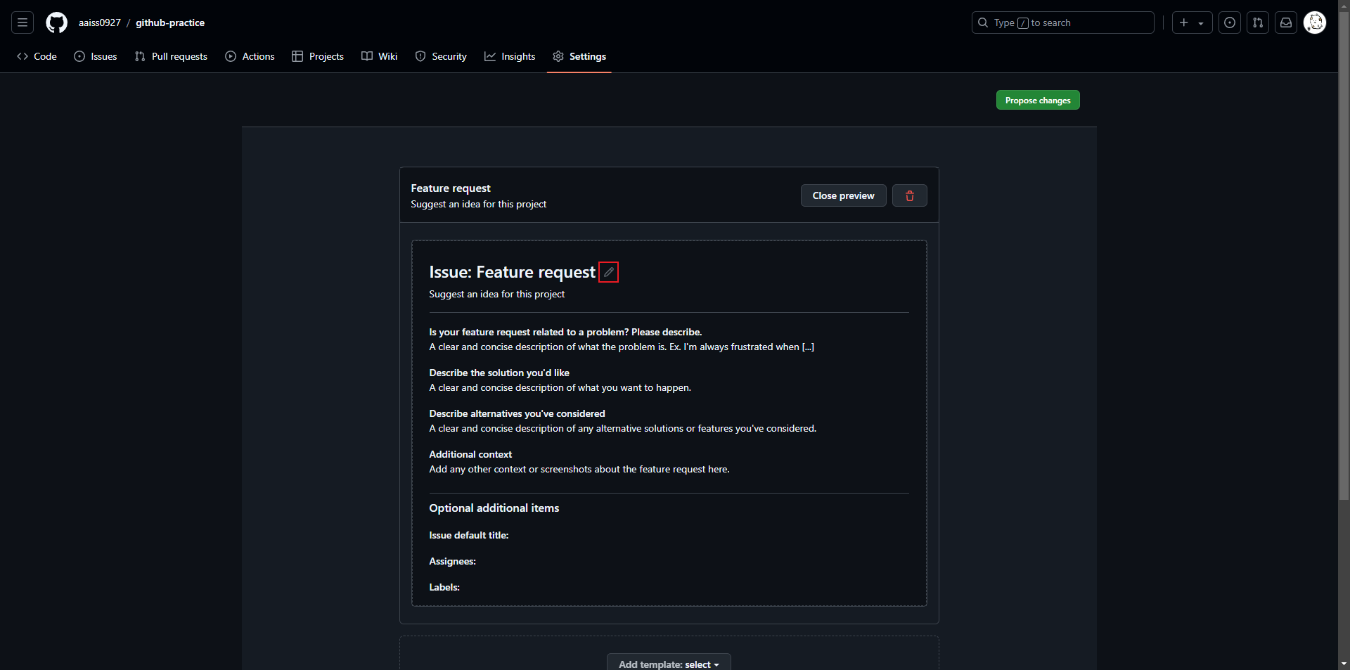 스크롤 내린 후 Features - Issues의 "Set up templates" 클릭