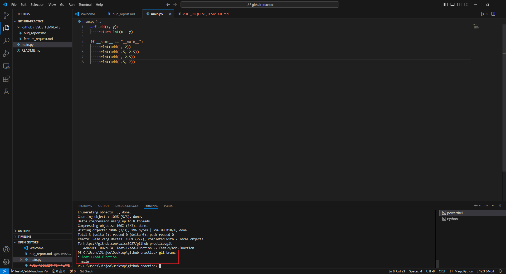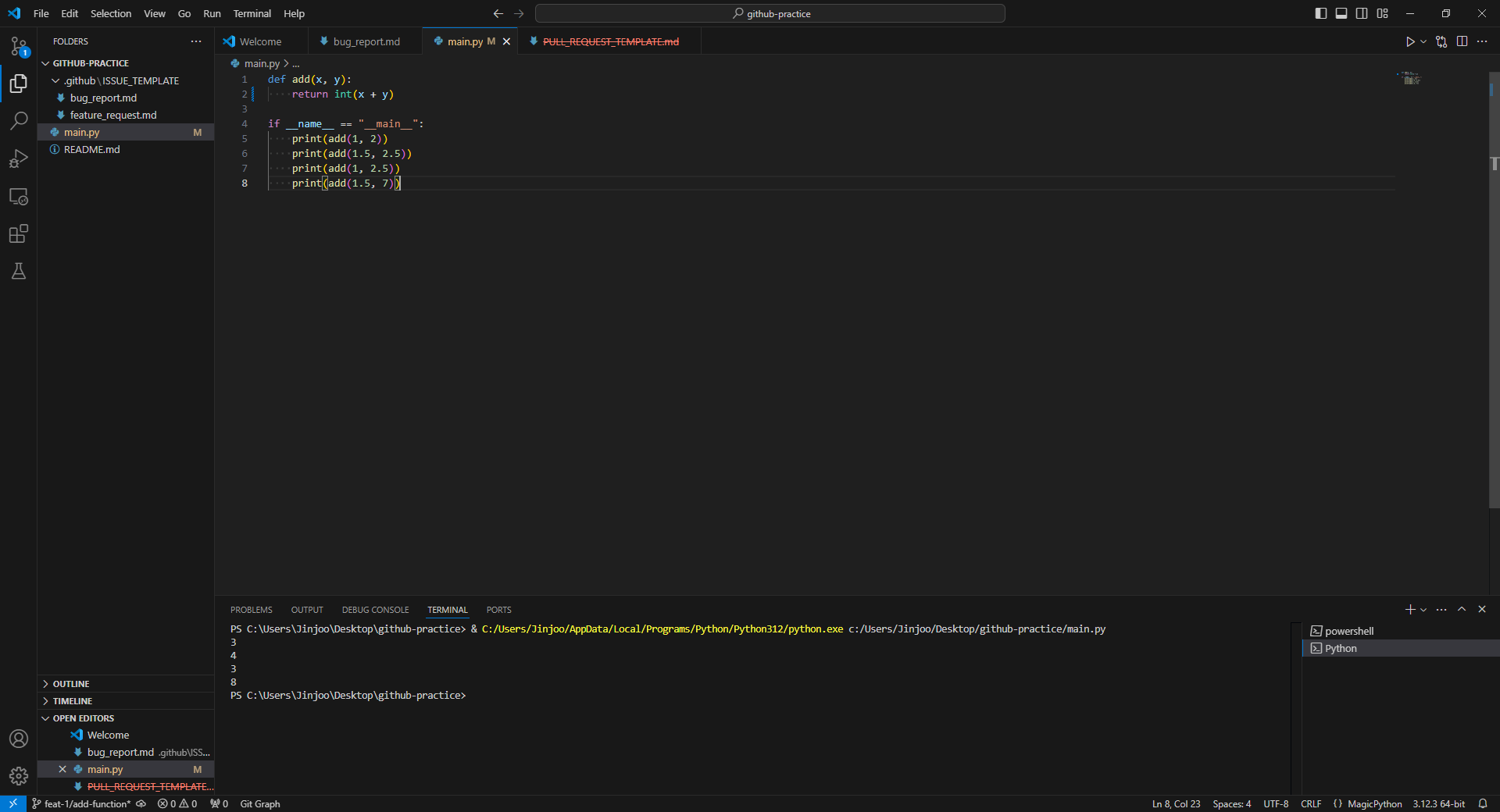 add-function을 구현했던 branch로 돌아와 코드 수정