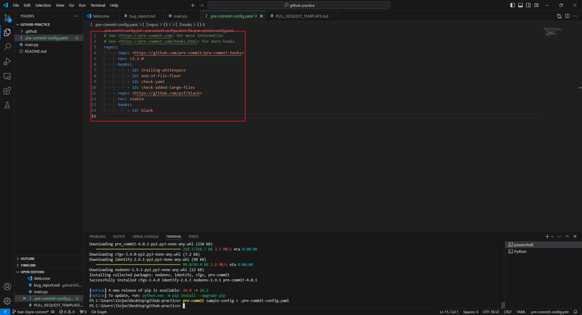 pre-commit sample-config > .pre-commit-config.yaml 입력