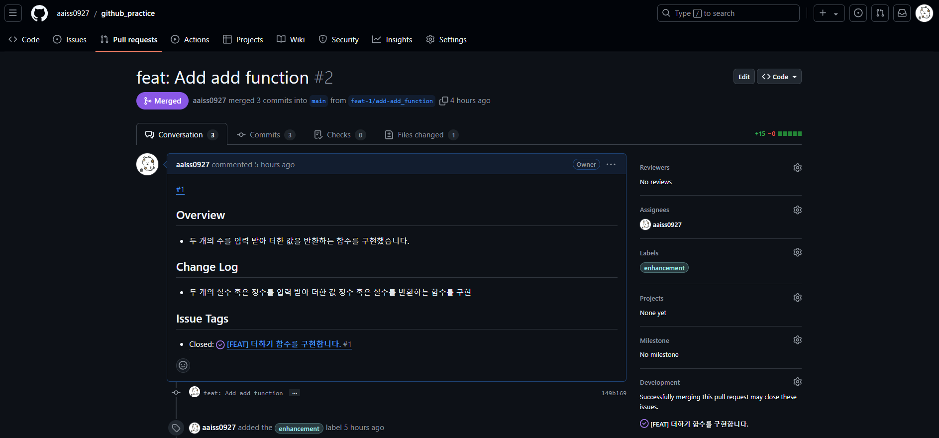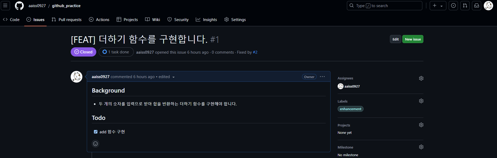 - 해당 작업과 관련된 Issue의 Tag 기록