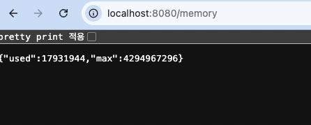 주요 클래스로 위와 같이 세팅하고 웹 서버를 실행해보면, 현재 메모리 사용량을 나타내어주는 아주 간단한 기능을 구현해볼 수 있다.
