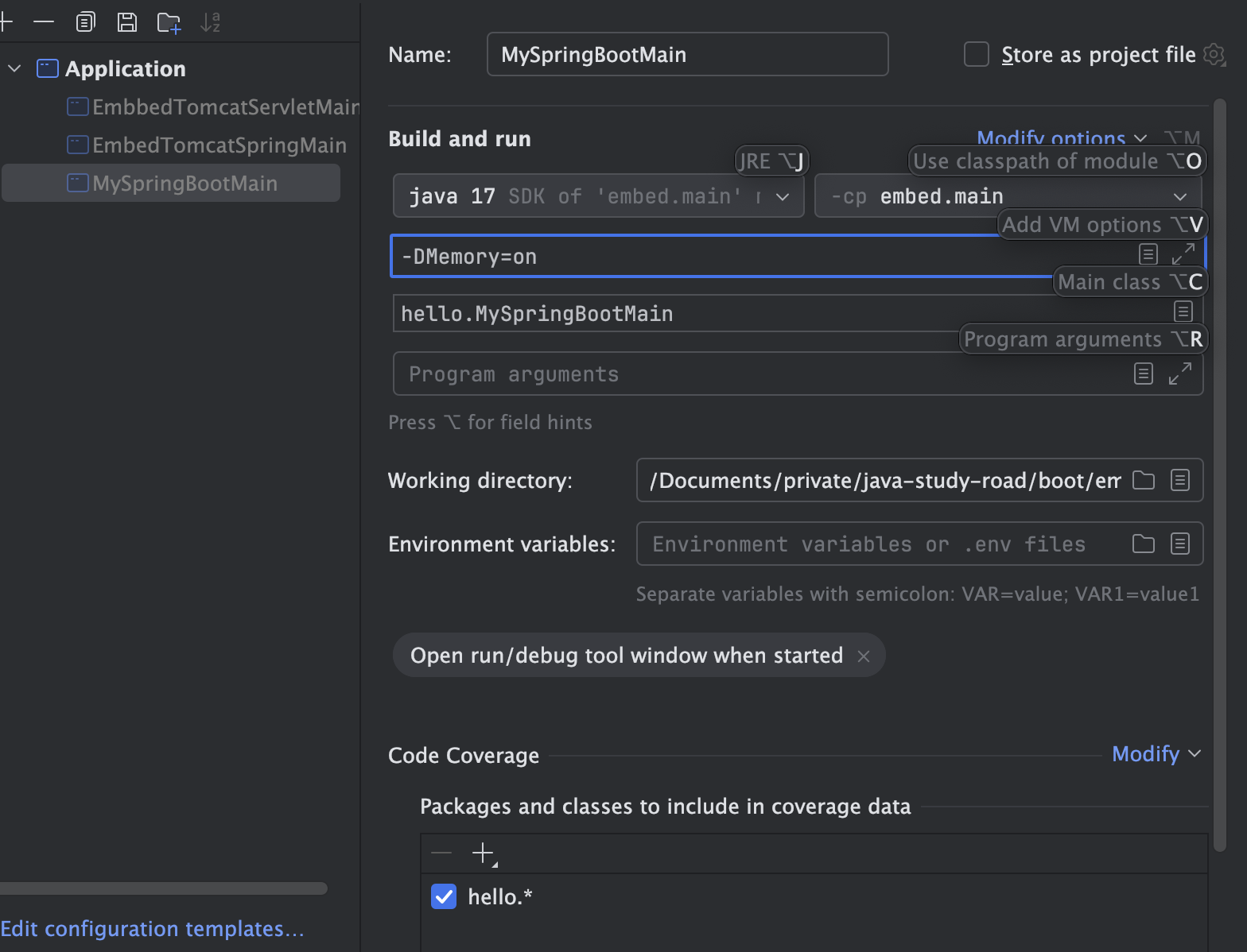 이렇게 설계한 후 라이브러리를 jar로 빌드하고 이를 사용할 프로젝트에서 받아(java.libs경로를 생성하고 이에 받도록 하자.) build.gradle에서 임포트만 한다면 필요한 빈 객체가 자동등록되고, 우리가 라이브러리에 적용했던 Conditional에 대한 기능도 그대로 동작하여 VM options에 따라 memory컨트롤러 경로가 활성화된다.