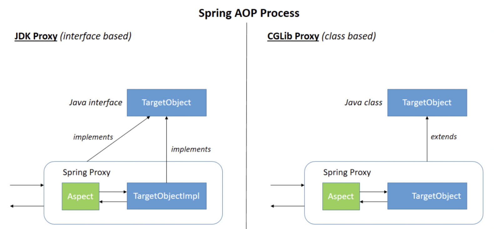 이때 MemberServiceImpl에 대해 프록시를 생성한다면 JDK 방식은 MemberService를 구현한 프록시가 탄생할 것이고 Cglib의 경우에는 MemberServiceImpl의 자식을 만들어낼 것이다.