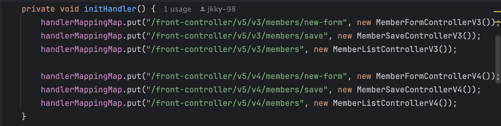 갑자기 컨트롤러를 핸들러로 지칭하면서 생긴 헷갈림과 어댑터의 존재 필요성에 대한 의문을 다시 확인해보려고 한다. 이 확인 작업은 커스텀 MVC를 다시 잘 이해하기 위한 것이며, Spring MVC를 대상으로 한 코드 분석은 아니다.