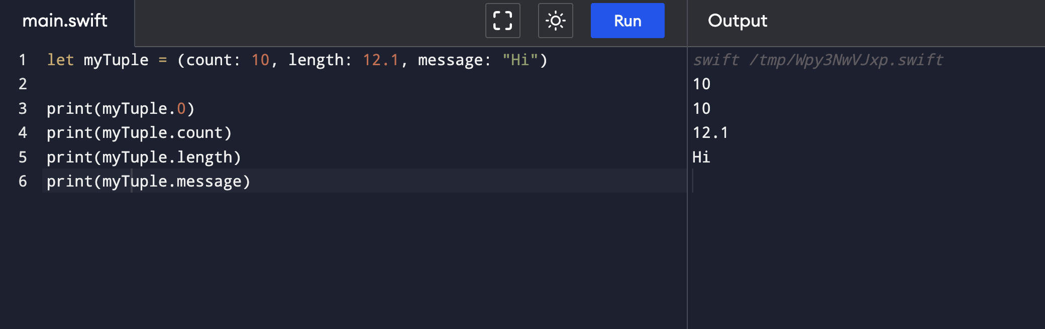 Swift에서 튜플(Tuple)은 여러 값을 단일 복합 값으로 그룹화하는 방법을 제공합니다. 각 값은 서로 다른 유형이 될 수 있습니다. 튜플은 함수에서 여러 값을 반환하거나, 일시적인 그룹으로 데이터를 집합화하는 데 유용합니다.