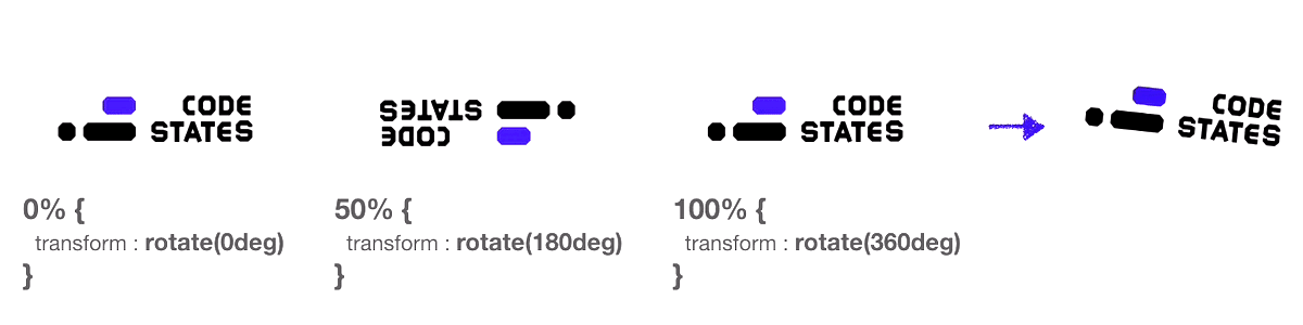 /* 시작 시점에선 0도, 50% 시점에선 180도,