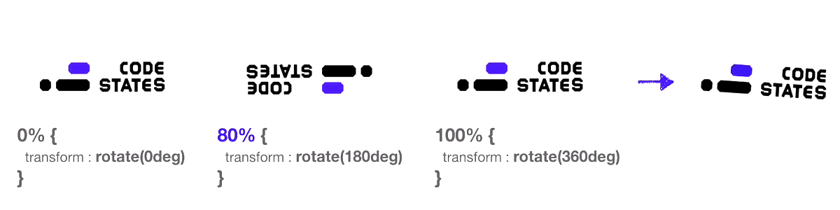 그 결과 애니메이션이 재생되는 3초중에서 80%인 2.4초동안 180도 회전하고, 나머지 20%인 0.6초동안 360도까지 회전하는 것을 확인할 수 있다.
