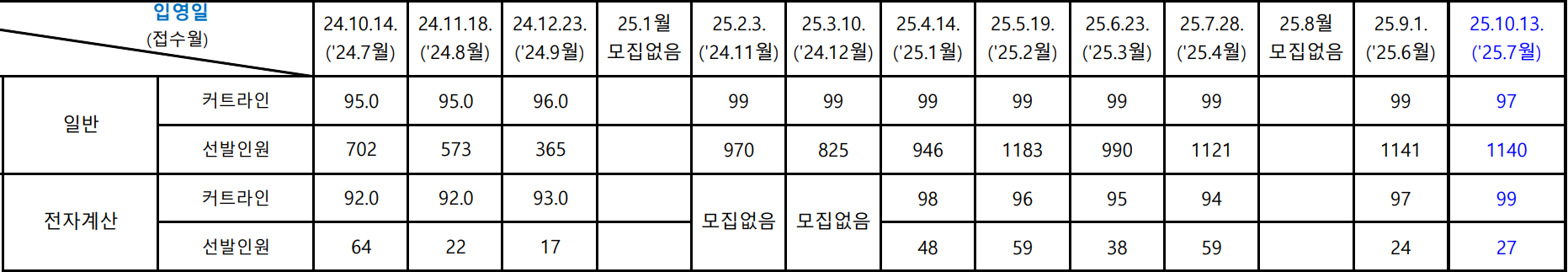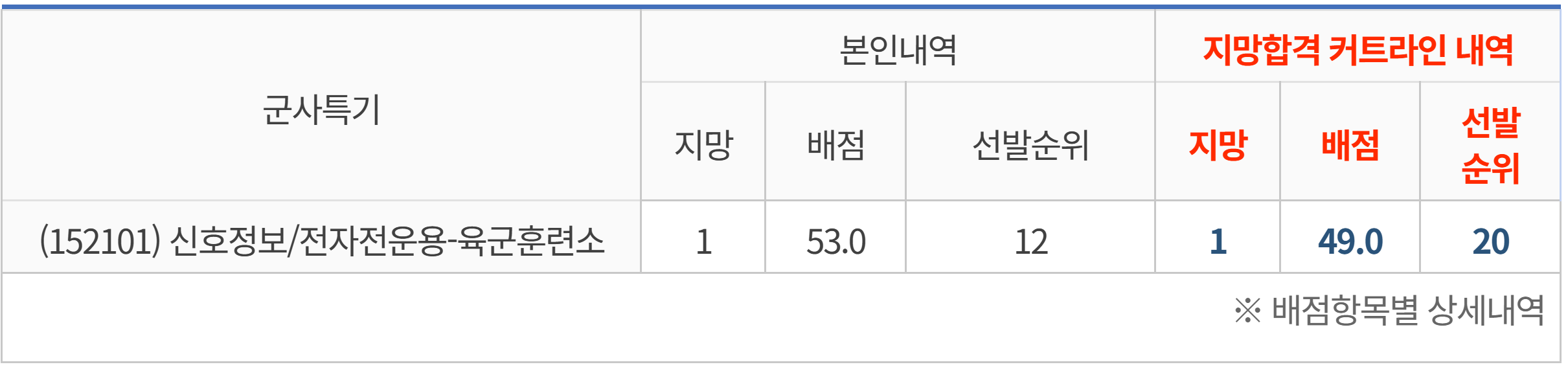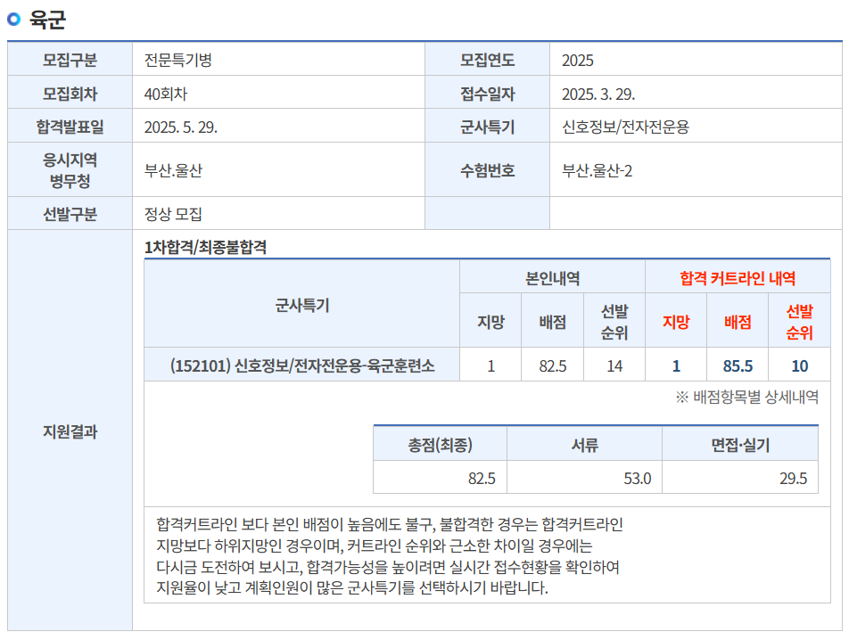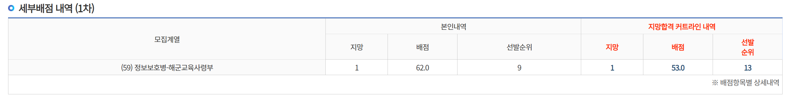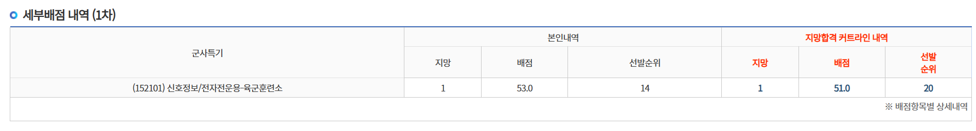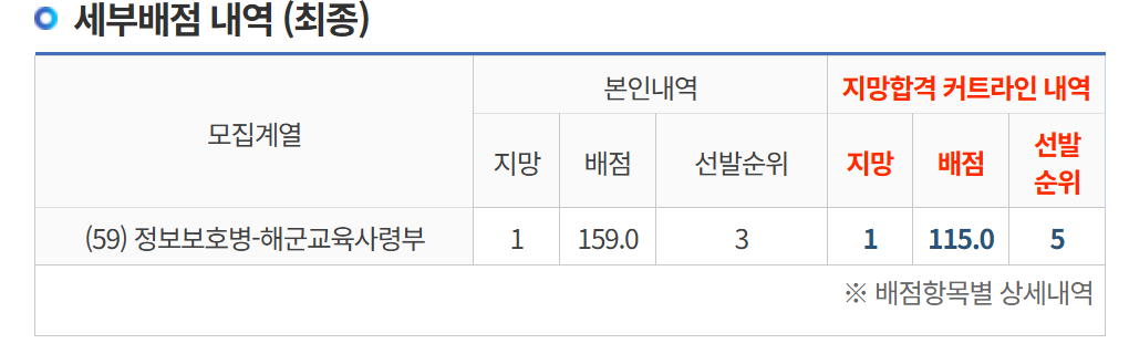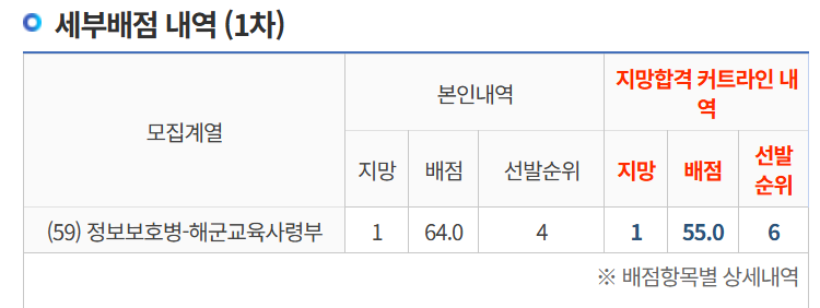 어차피 내 점수가 육군 전산병은 붙기 충분하고도 남았기 때문에 그 아래로는 고려하지 않았다.