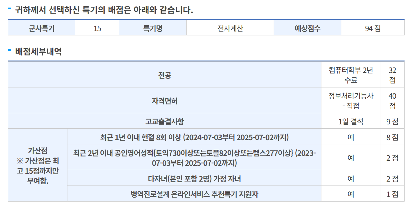 내가 원하는 보직 중 육/공군 정보보호병의 경우 나에게 배점이 불리한 시스템이다.