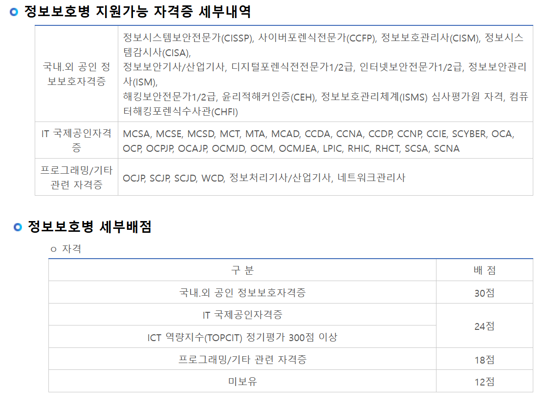 아래에는 어떻게 일부 보직을 타겟팅하여 효율적으로 준비할 수 있는지 해군 정보보호병의 예를 들어 정리해보겠다.