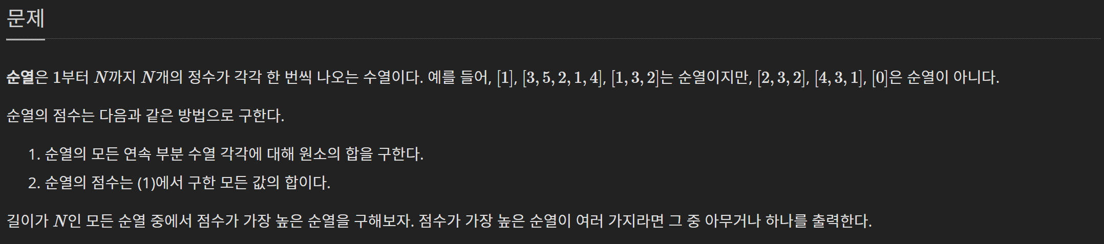이것이 가능한 이유는 점수가 가장 높은 순열이 여러 가지라면 그 중 아무거나 하나를 출력한다는 조건이 있기 때문이다.