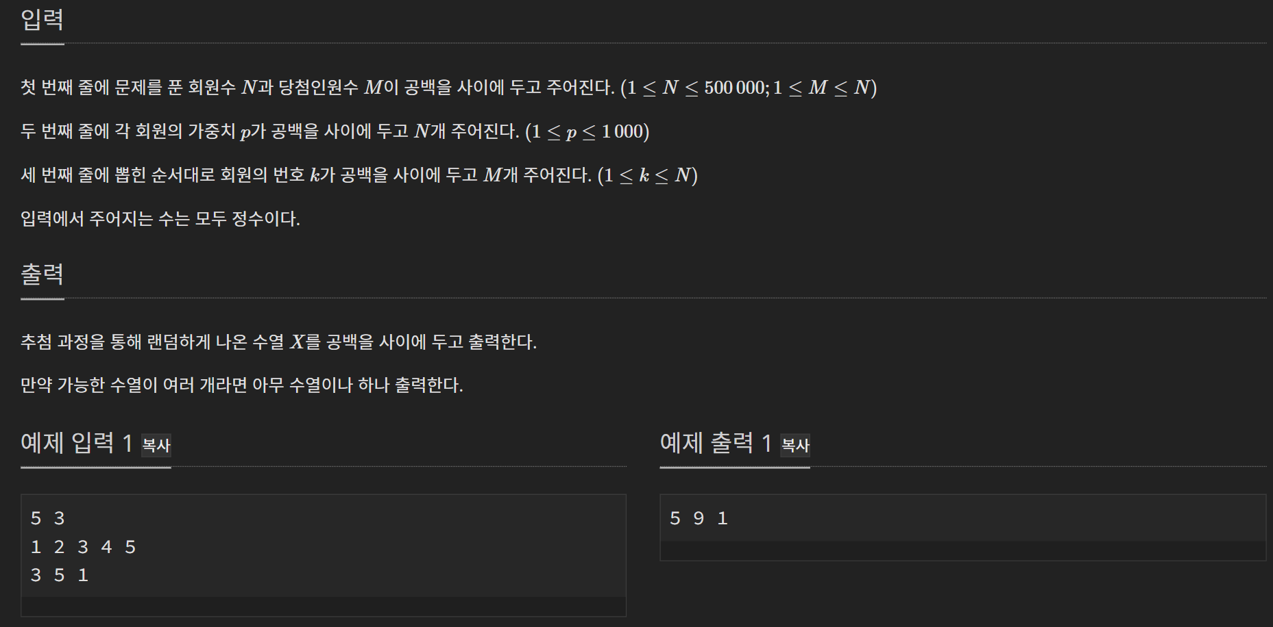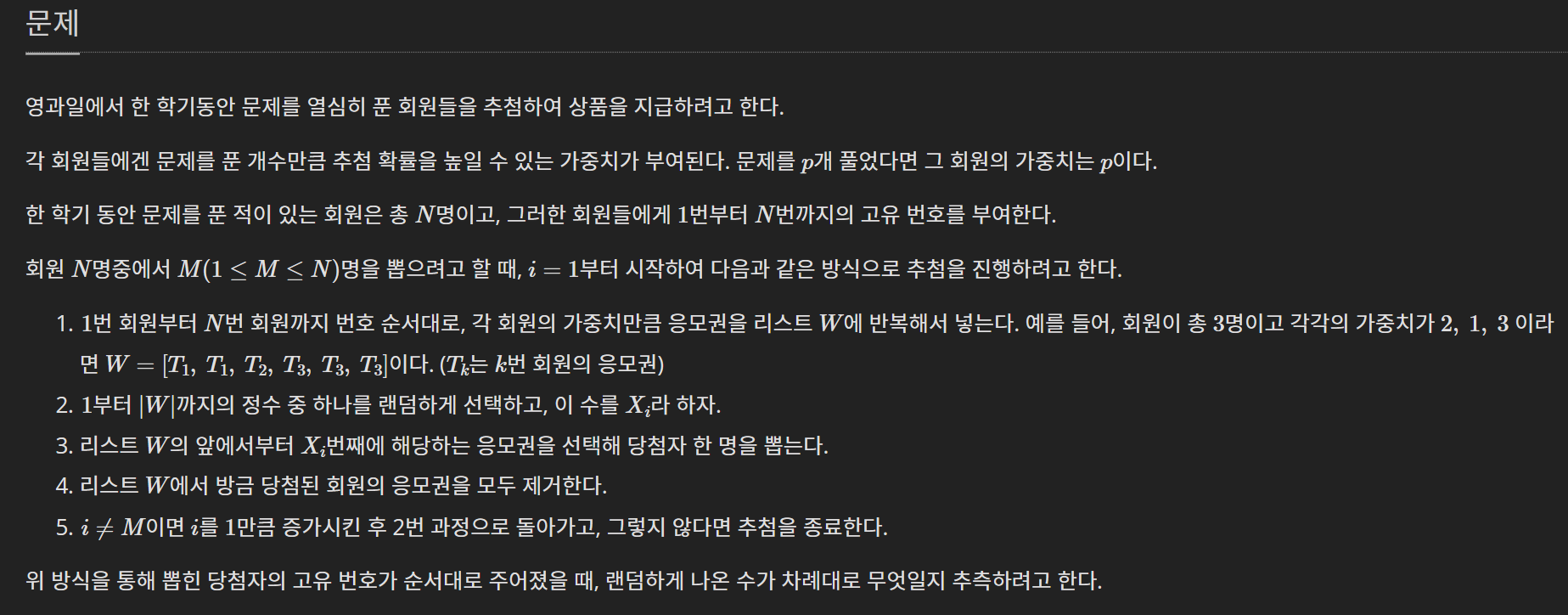 1번의 '회원이 처음으로 나오는 index는 이전 가중치의 합과 같다'는 것은 다음의 예로 이해할 수 있을 것이다.