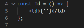 Td 컴포넌트가 중괄호 { } 로 감싸져 있으니 이러한 오류가 발생하였다. 소괄호 ( ) 로 변경하니 해결되었다!