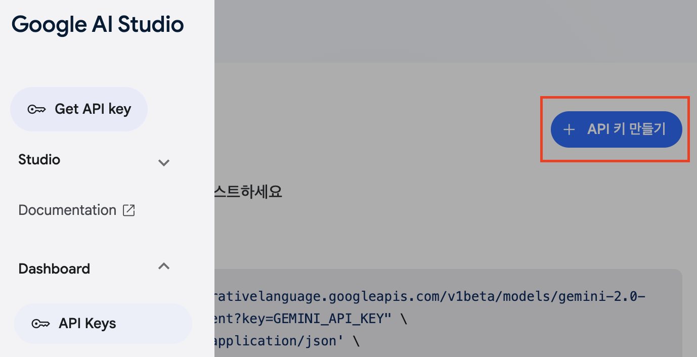 Dashboard-API Keys 탭에 들어가서 API 키 만들기 버튼을 누른다.