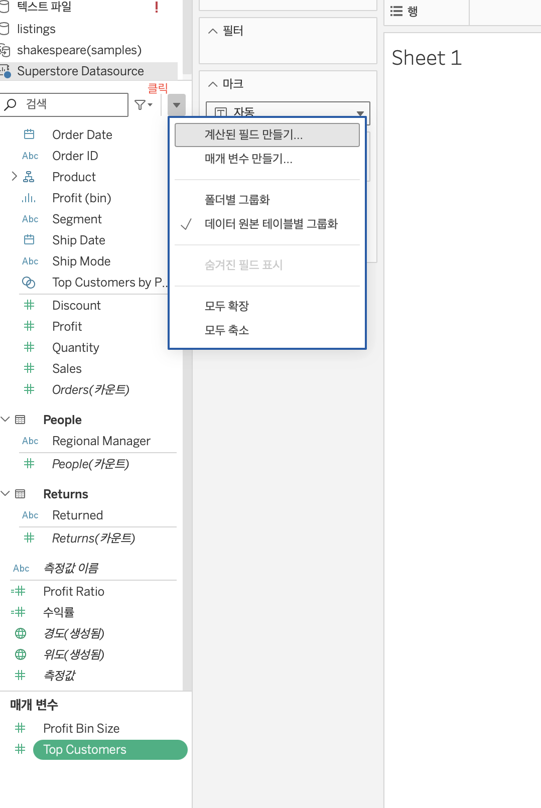 기존 컬럼을 계산해서 새로운 컬럼을 생성합니다. 계산된 필드를 사용하면 데이터 원본에 있는 데이터에서 새 로운 필드를 만들 수 있어요!