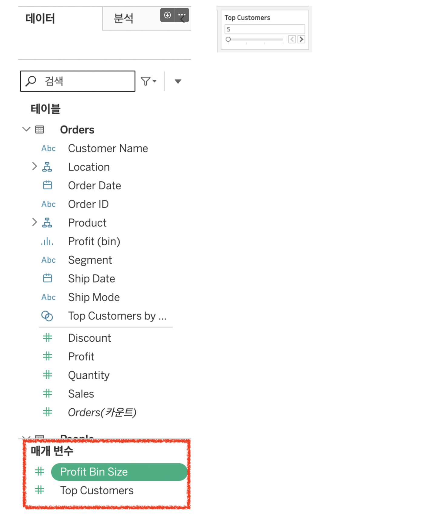 계산, 필터 또는 참조선에서 상수 값으로 대체할 수 있는 숫자, 날짜 또는 문자열과 같은 통합 문서 변수를 말합니다. 매개변수는 사용자가 대시보드와 워크시트의 데이터를 필터링하거나 조정할 수 있는 기능입니다! 계산된 필드에 추가해서 사용합니다.