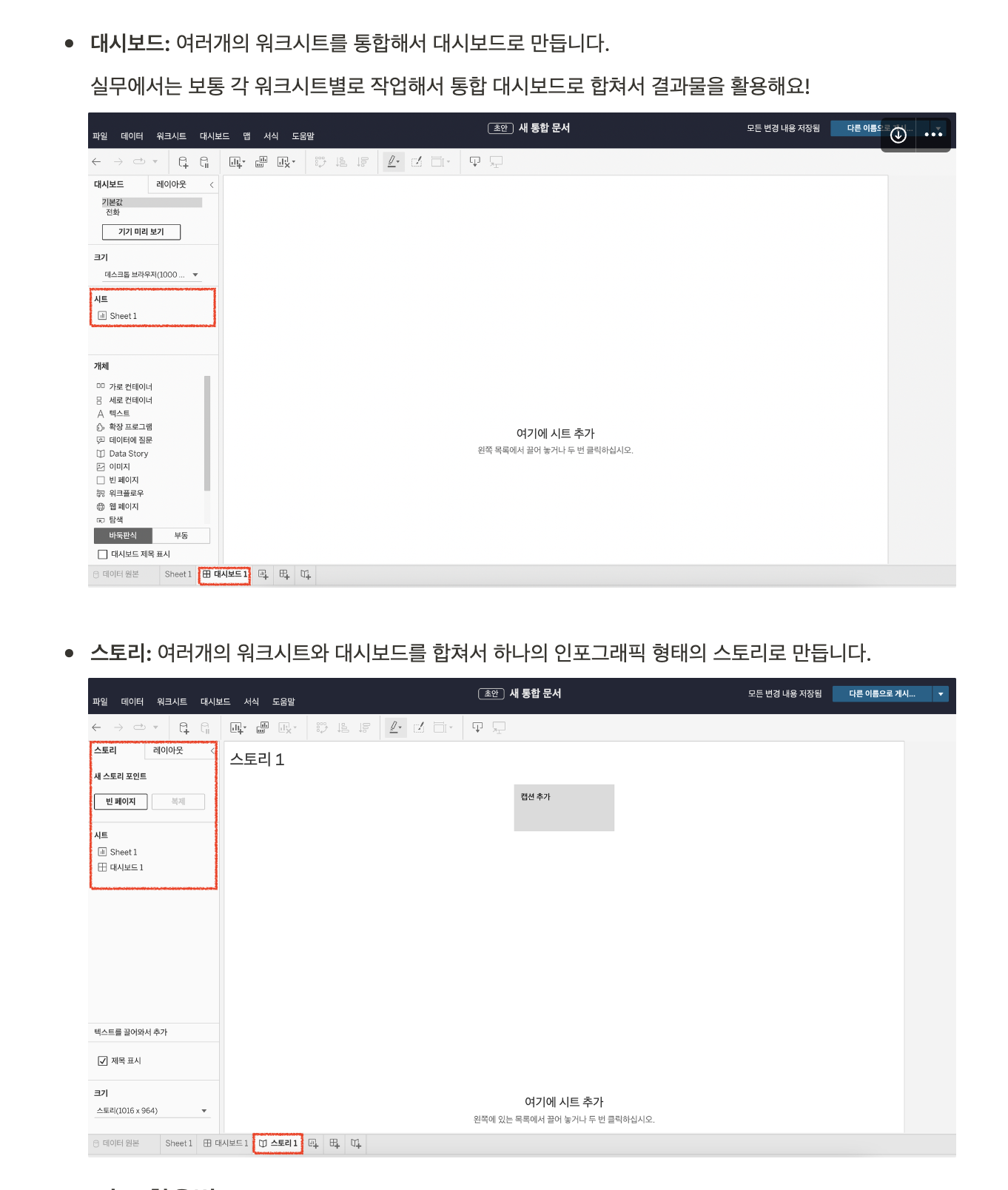 - 블렌딩: 물리적으로 테이블을 병합하지 않고, 워크시트 화면에 두 테이블이 같이 있는 형태입니다. 블렌딩은 하나의 테이블을 병합하는 것이 아니라 서로 다른 데이터 베이스에서 데이터를 불러오고 임시로 분석할때 사용하는 방법이에요!
