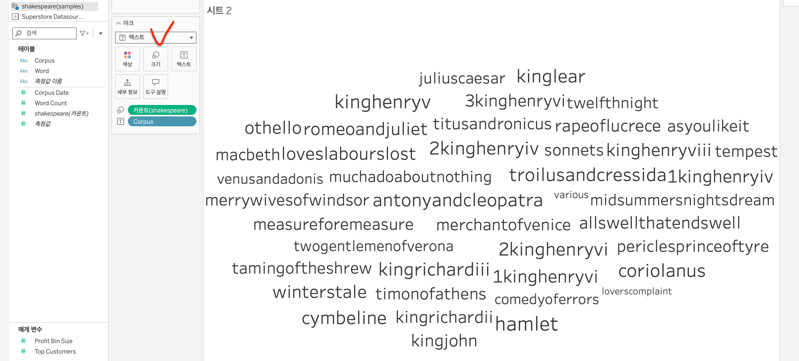 여기서 텍스트로 변경하면 워드 클라우드형식으로 나옴