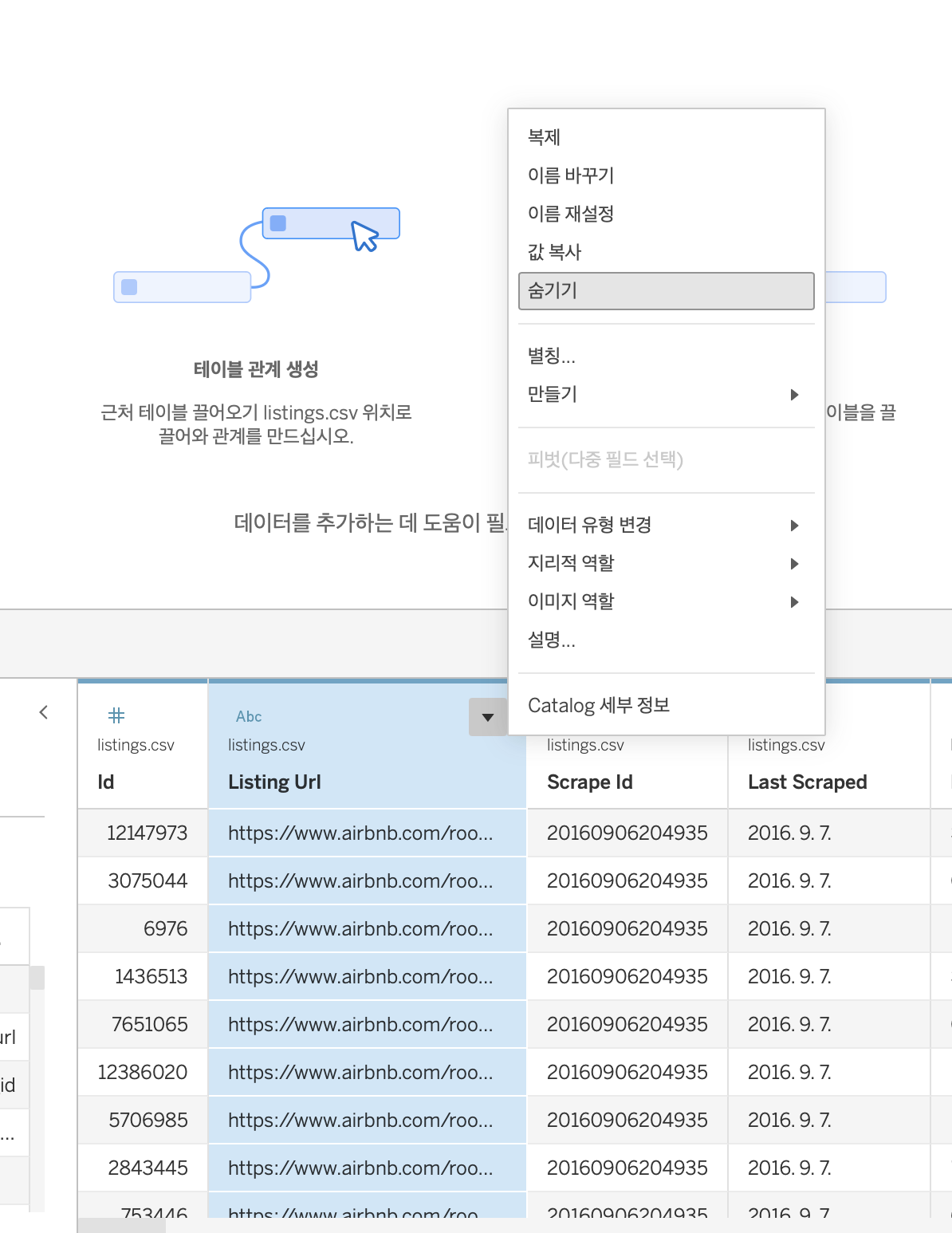 **💁 [연습 문제] 3가지 csv 파일 연동하기 실습에 이어서 데이터 원본 탭에서 3가지 데이터베이스간 관계(Relation)를 만들어봅시다!