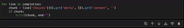 chunk = line['choices'][0].get('delta', {}).get('content', '')